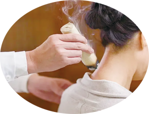 • 即為懸空施灸,是不借助於任何灸器以左手按穴、右手持艾的懸空操作的一項中醫外治技術。